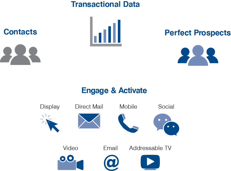 12 big data marketing companies and Amazon store transactional data. They use a matrix of powerful transactional data that produces your “perfect prospect” – again and again.